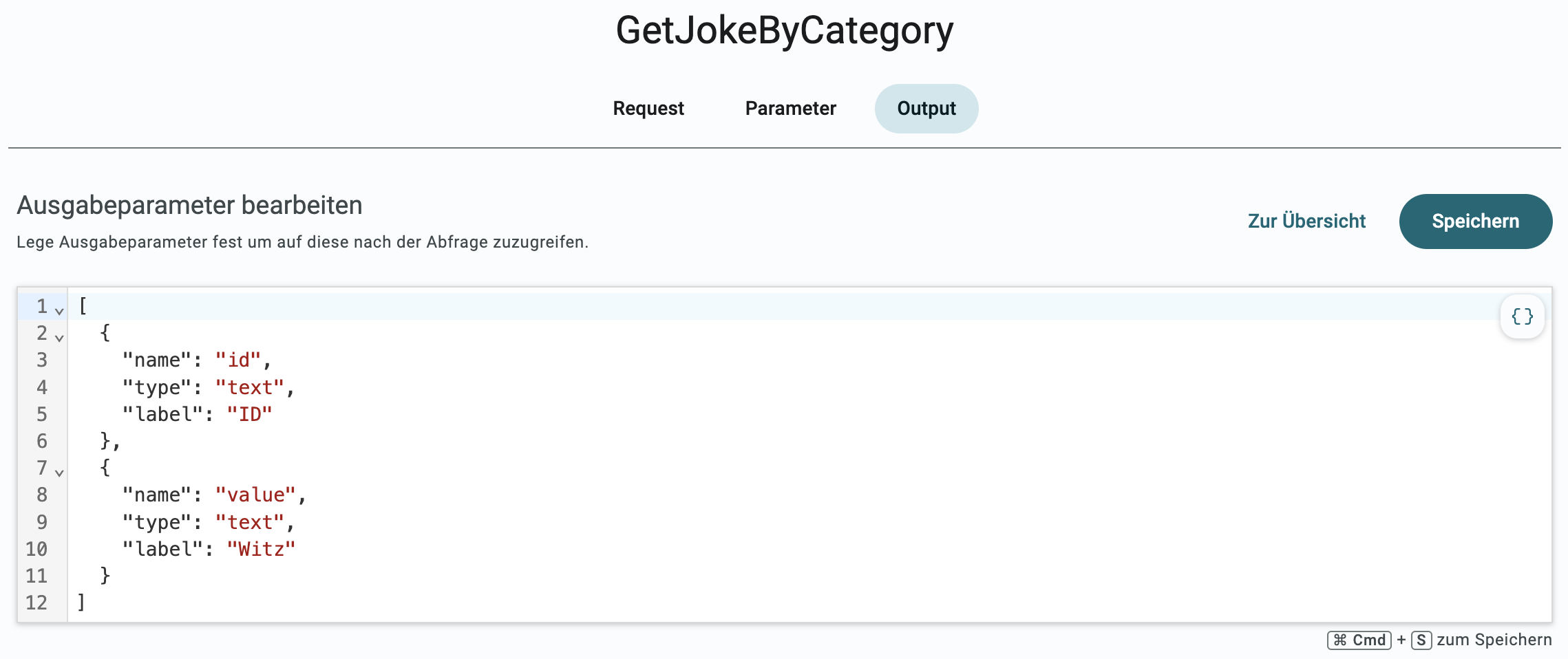Beispiel - Output-Definition (flache JSON-Datenstruktur)